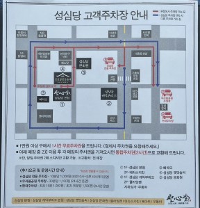 본점은 주차장이 5곳으로 분산되어 있습니다. 각각의 주차장 위치는 아래 사진에 자세히 나와 있어요.