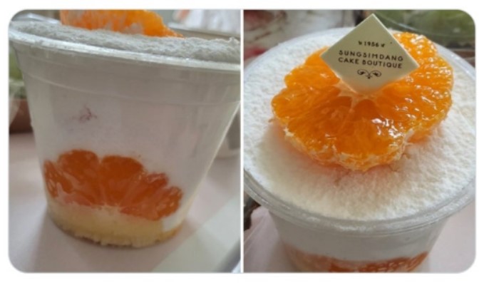 혹시나 이 글을 보시고 생귤시루를 구매하러 가셨는데 실패하셨다면 미니 컵케이크로 생귤시루의 맛을 느낄 수 있습니다. 구매하러 가셨는데 생귤시루가 너무 커서 부담스럽다고 느끼셔도 컵케이크만으로도 충분히 맛은 느낄 수 있습니다. 물론 생귤시루가 더 맛은 있습니다. 생귤시루는 빵/생크림/생귤 이렇게 1:1:1 비율로 만들어졌어요. 컵케이크는 생크림 비율이 조금 더 높아요. 미니 컵케이크도 구매 제한을 하는 경우가 있습니다.