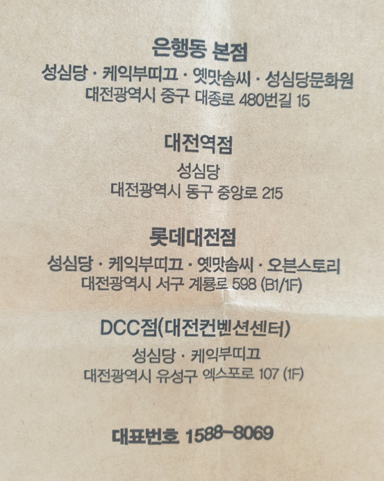 성심당 매장이 대전에만 있는 건 모두 알고 계시죠. 대전에서 총 4곳이 운영 중인데요. 대전 중구에 위치하는 본점과, 롯데백화점 대전점, DCC 점, 대전역 점 이렇게 4곳이 있습니다. 각 위치 별로 운영 시간이 다르니 잘 알아보고 가셔야 합니다.