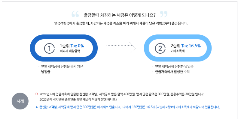 - 출금 시 차감되는 세금을 최소화하기 위해서 세율이 낮은 적립금부터 인