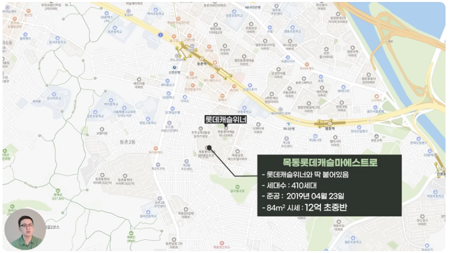 롯데캐슬 위너는 2005년 준공의 107세대 등촌역 역세권이고, 2005년식이지만 내부 수리만 하면 충분히 편하게 살 수 있습니다. 단점이 두 가지가 있다면, 빌라에 둘러싸여 있어서 좀 섬 같은 느낌이 든다는 것과 초등학교가 도보권에 없어서 라이딩을 해야 된다는 것입니다. 여기 84 제곱의 시세는 12억 초반입니다. 다음, 목동 롯데캐슬 마에스트로는 롯데캐슬 위너와 딱 붙어 있고요, 여기는 410세대, 2019년식으로 신축입니다. 여기에 84제곱은 12억 ~ 13억 정도 합니다.
