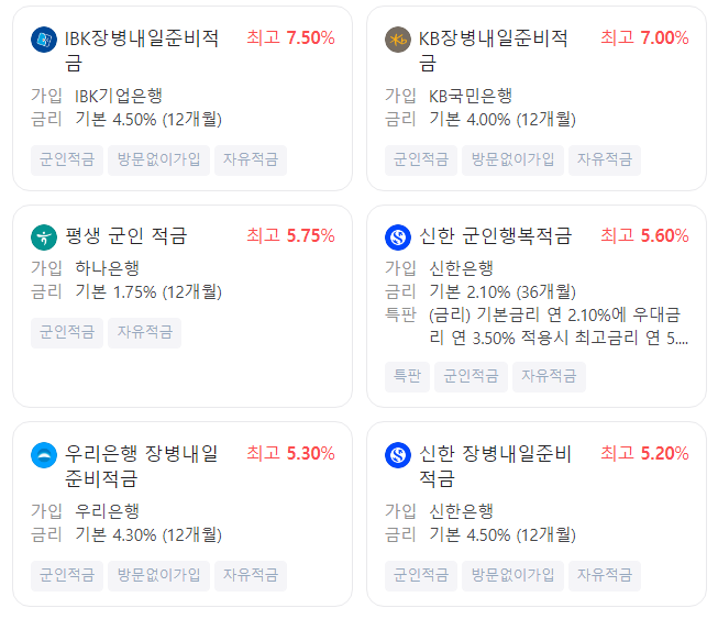 - 2024년 6월 6일 기준으로 IBK 장병내일준비적금의 이율이 가장 높습니다. 12개월 기준으로 기본 4.5%에 우대금리가 최대 3%까지 적용 가능합니다. 우대금리는 여러 조건들을 만족할 때만 적용가능하며, 급여이체 실적과 주택청약종합저축 신규 가입을 해야 합니다. 기초생활수급자인 경우 우대 금리를 3%를 적용 받을 수 있습니다.