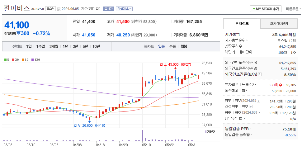 최근 두두러진 상승세를 보였습니다. 검은사막이 중국 진출이 발표되기 전, 기대작인 '붉은사막'이 가시화에 따른 것으로 해석됩니다. 기관의 매수세가 뚜렷하게 보이고 있습니다. 이미 주가 오름세를 보이지만 이후에도 긍정적인 전망을 보이고 있어 상승이 예상됩니다. 다수의 증권사에서 펄어비스에 대한 긍정 전망을 잇따라 발표했습니다. 펄어비스 주가 변동이 다른 게임주에도 영향을 줄 수 있습니다.
