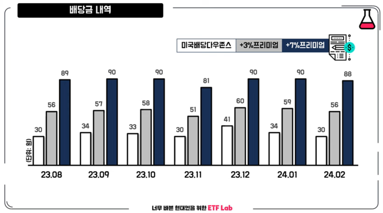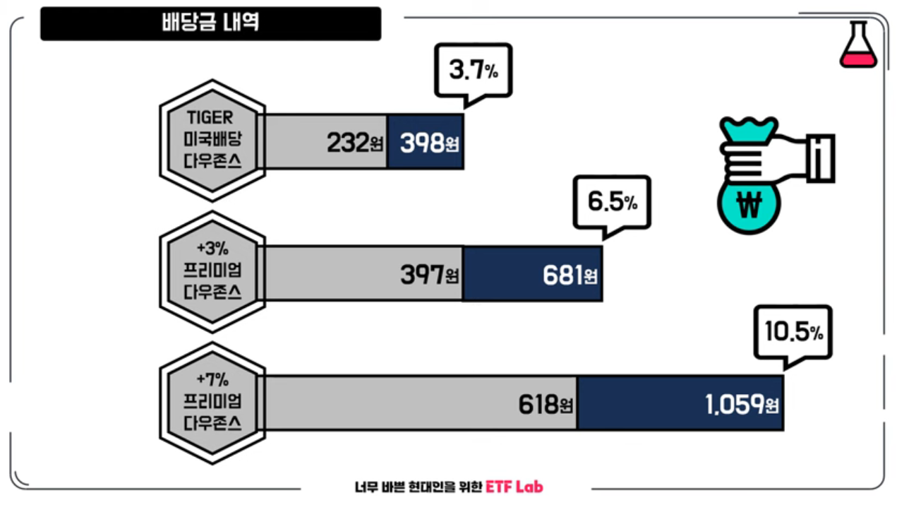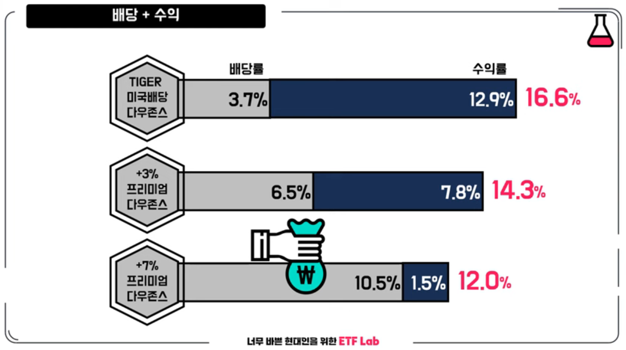 TIGER 미국 배당+3%, 배당+7% 프리미엄 다우존스