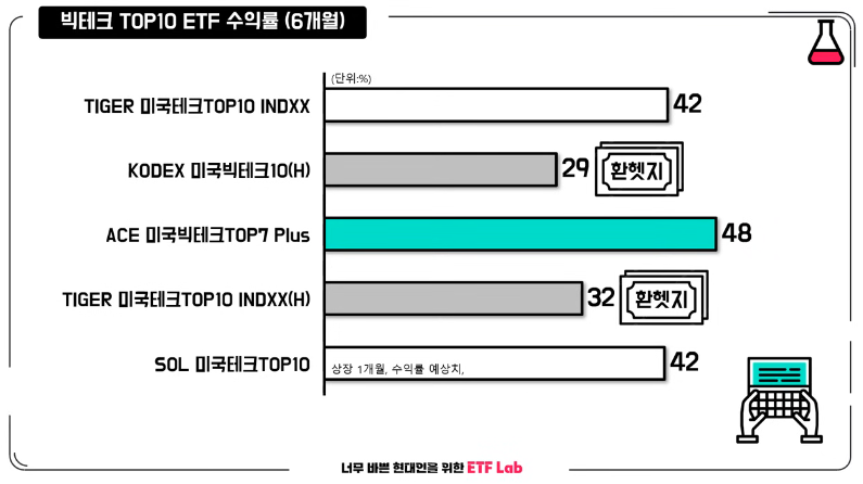 27개 ETF를 살펴보면 빅테크와 관련된 모든 ETF가 한데 모여 있습니다. 이 중 미국 대형 기술 기업에 집중 투자하는 ETF는 5개에 대해 자세히 살펴보겠습니다. 현재 살펴볼 5개의 ETF는 국내에 상장된 미국 빅테크 기업 투자에 초점을 맞춘 ETF입니다. 언뜻 보면 모두 미국 기술주 상위 10개 종목에 집중한다고 생각할 수 있습니다. 이 중 하나에 투자하면 수익률에 놀랄 수도 있습니다. 그러나 투자하기 전에 각 ETF의 세부 사항을 이해해야 자신에게 맞는 ETF를 찾을 수 있습니다. 각 ETF에 대해 자세히 살펴보겠습니다.