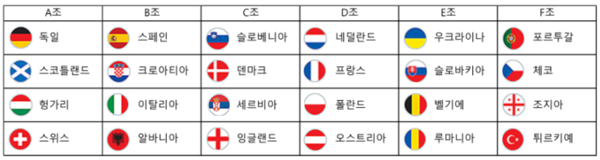 한국 시간으로 6월 15일부터 유로 2024 대회를 시작 합니다. 한 달 동안 진행되는 만큼 축구 팬들의 기대를 충족하리라 기대됩니다. 경기력으로 보면 월드컵보다 더 재밌다는 유로 2024 대회가 시작했습니다.